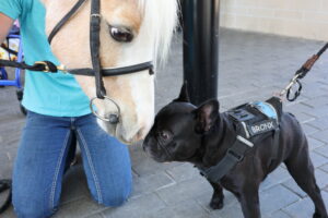 Patty’s patient and steady nature makes him ideal for therapeutic visits. Ursula describes him as calm and unbothered by noise or activity around him.